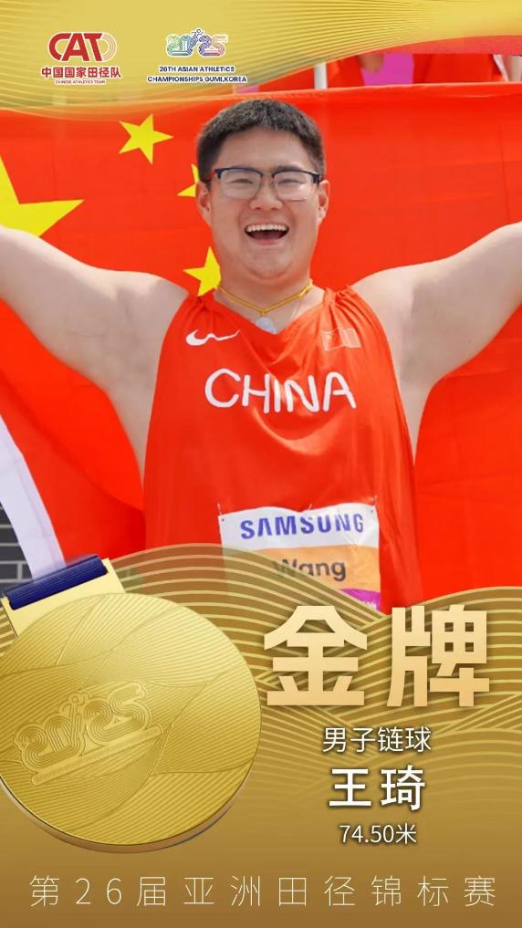 當(dāng)日上午率先進(jìn)行的男子鏈球決賽中,中國(guó)隊(duì)名將王琦以74米50的成績(jī)力壓兩名日本選手奪冠。女子1500米比賽中,“00后”選手李春輝以4分10秒58的成績(jī)奪冠,大幅提升個(gè)人最好成績(jī)。此外,女子撐桿跳高比賽中,中國(guó)隊(duì)選手牛春格以4米48的成績(jī)奪冠,她的隊(duì)友徐惠琴收獲銀牌。男子十項(xiàng)全能比賽中,費(fèi)翔以7634分為中國(guó)隊(duì)再添一金。