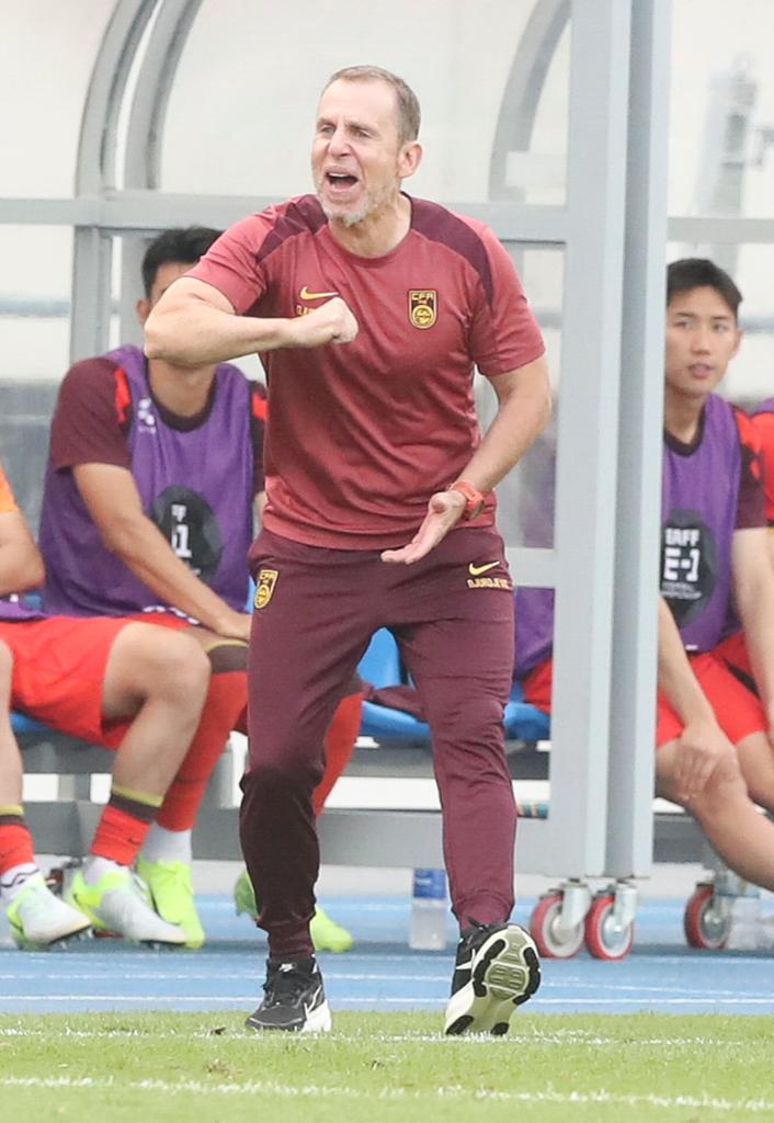7月15日,中國(guó)隊(duì)代理主教練久爾杰維奇在場(chǎng)邊指揮。新華社記者 姚琪琳 攝 “隊(duì)里出現(xiàn)了一些好的年輕球員,這是一個(gè)非常積極的信號(hào),我們也希望接下來(lái)國(guó)家隊(duì)能夠更勇敢地利用好這些年輕球員,這是我們中國(guó)足球走的一條正確的道路?!本脿柦芫S奇說(shuō)。 中國(guó)隊(duì)守門(mén)員顏駿凌賽后表示,這次來(lái)東亞杯隊(duì)伍主要有兩個(gè)目的,第一是讓一些年輕球員得到鍛煉,然后是感受?chē)?guó)際比賽中的節(jié)奏?!耙?yàn)殛?duì)伍處于新老交替的時(shí)期,很多年輕球員都有了第一次代表國(guó)家隊(duì)出場(chǎng)的機(jī)會(huì),我們也是一場(chǎng)比一場(chǎng)踢得更好。希望這些年輕球員通過(guò)東亞杯三場(chǎng)比賽總結(jié)更多經(jīng)驗(yàn)。” 顏駿凌還特別指出,通過(guò)這次東亞杯,中國(guó)隊(duì)可以很直觀地感受到其他聯(lián)賽的氛圍。