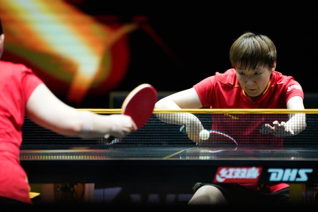 9月29日,王曼昱在比賽中回球。新華社記者 謝晗 攝