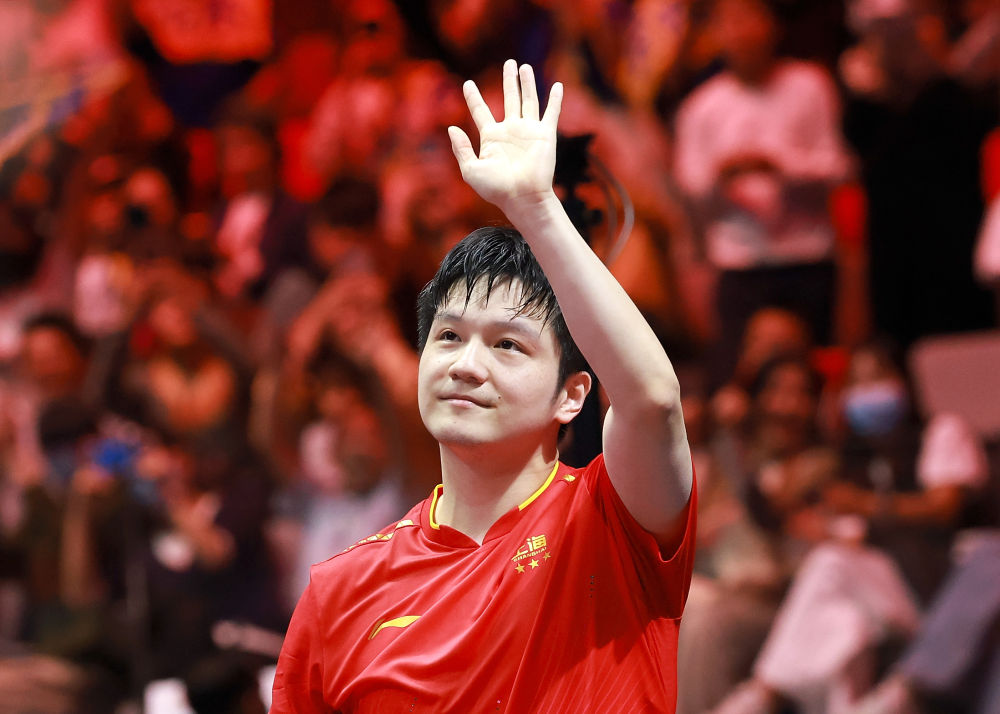 11月16日,上海隊選手樊振東賽后向觀眾揮手致意。新華社記者 梁旭 攝