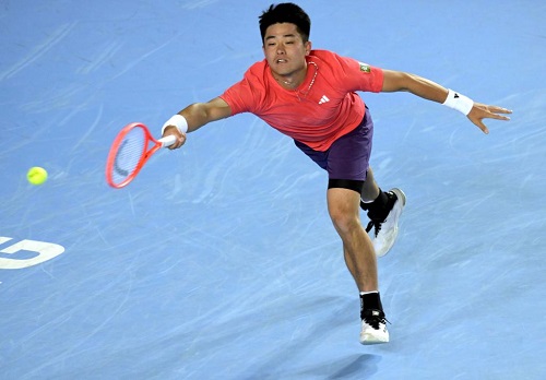 1月7日,吳易昺在比賽中回球。新華社發(fā)(盧炳輝攝)