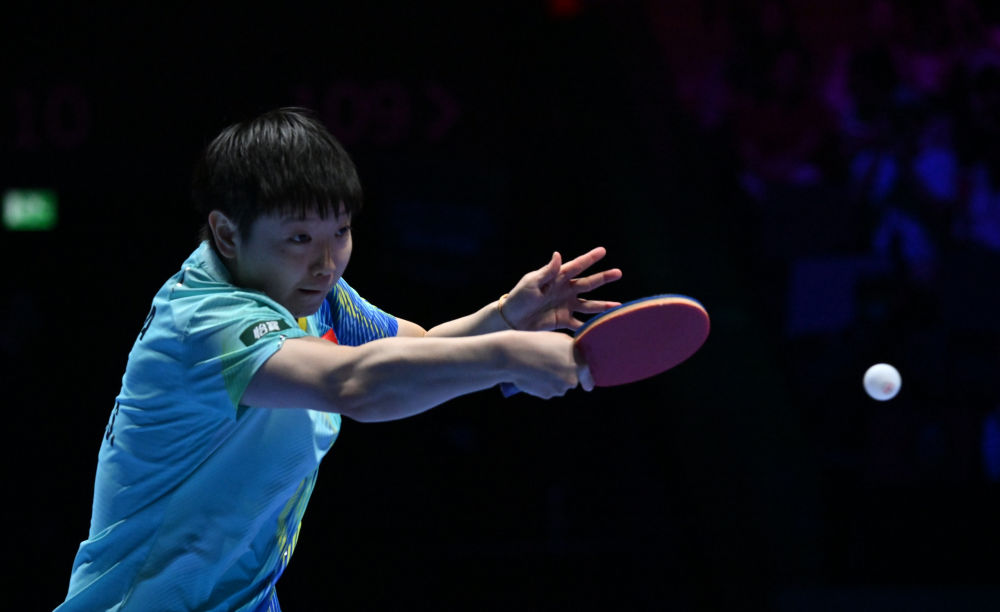 3月30日,中國(guó)選手孫穎莎在比賽中回球。新華社記者 于洋 攝