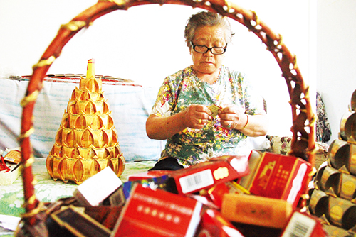 同煤集團軒崗煤電公司退休女職工王治勤喜歡用撿來的廢香煙盒制作工藝品,送給礦工,倡導“吸煙有害健康,戒煙從我做起”的觀念。今年已經(jīng)75歲高齡的王治勤,在職時下過井,開過井下運煤電車,做過礦工的思想政治工作,也在圖書館工作,為礦工讀書提供方便,她深知礦工的工作和生活。退休后王治勤仍然閑不下來,為礦工健康著想,動手整理拾到的廢煙盒,做成工藝品。目前她已精心制作送給礦工1000余個工藝品,300余名礦工戒掉了吸煙的嗜好。圖為王治勤正在精心制作煙盒工藝品(吉建平 攝)