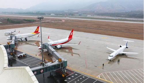 五臺(tái)山機(jī)場(chǎng)自2015年12月25日至今,開(kāi)航7個(gè)月共開(kāi)通了3條航線(xiàn),可通達(dá)???、桂林、上海、銀川、重慶、天津6個(gè)城市,共保障航班764架次,公務(wù)機(jī)20架次。
