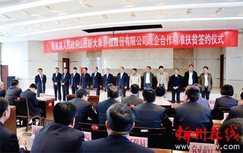圖為岢嵐與山西新大象養(yǎng)殖股份有限公司政企合作精準(zhǔn)扶貧簽約儀式現(xiàn)場。(尹艷 攝)