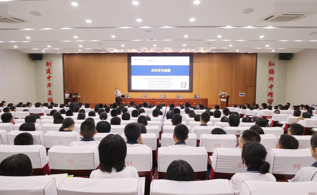 在忻州一中科技樓多功能報(bào)告廳,馬軍為師生們作了題為“水科學(xué)與健康”的專題報(bào)告,圍繞水中礦物質(zhì)及微量元素對健康的影響、飲用水凈化技術(shù)、源頭減污降碳技術(shù)、智慧水務(wù)與智能水廠等方面,立足高中教育階段學(xué)情,為廣大師生闡述水科學(xué)的內(nèi)涵與知識,并對哈工大生態(tài)文明相關(guān)學(xué)科的現(xiàn)狀與發(fā)展提出了深刻的見解。在場同學(xué)紛紛表示,馬軍院士淵博的學(xué)識和對專業(yè)發(fā)展的前景展望讓人受益匪淺,不僅開拓了大家探尋科學(xué)的視野與氣度,同時(shí)也領(lǐng)略了院士專家的家國情懷、學(xué)術(shù)風(fēng)采與人格魅力,激發(fā)了大家積極投身科技強(qiáng)國實(shí)踐,努力成為可堪大用、能擔(dān)重任的棟梁之材。
