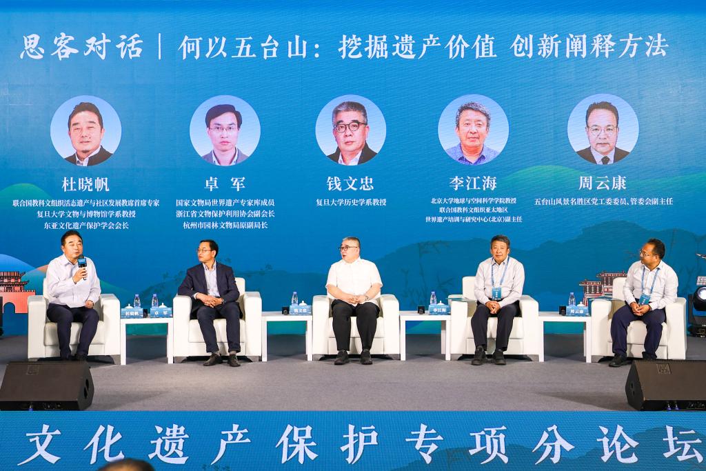 在文化遺產(chǎn)傳承利用分論壇上,多位專(zhuān)家學(xué)者以五臺(tái)山為例,圍繞“傳承利用文化遺產(chǎn)的多元價(jià)值”的主題,展開(kāi)兩場(chǎng)思客對(duì)話(huà)。