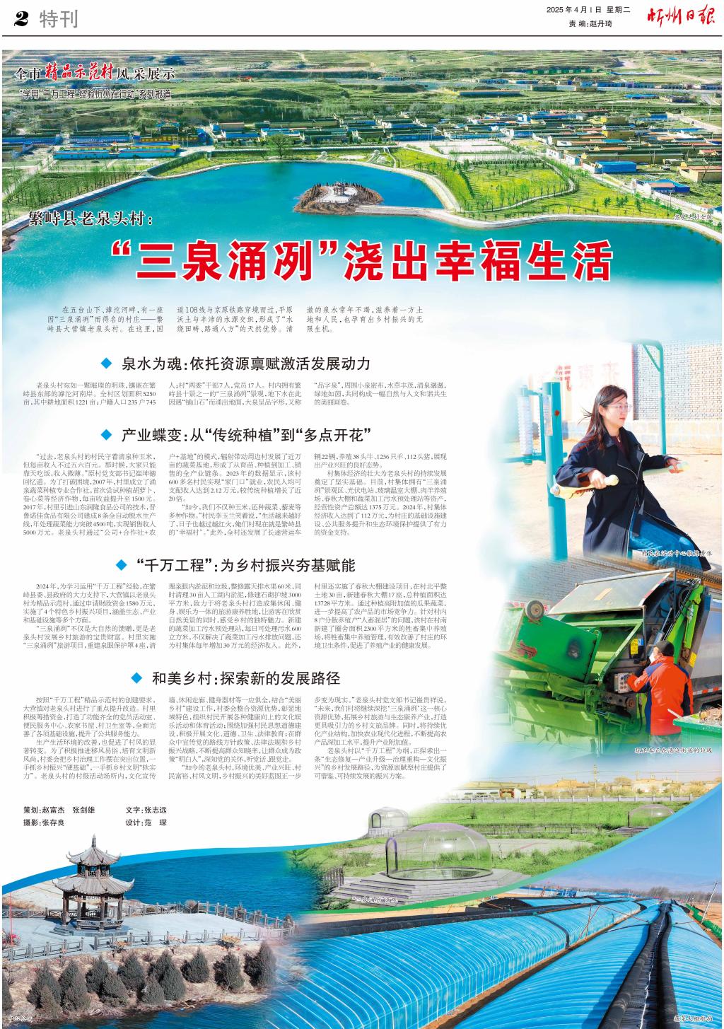 “如今的老泉頭村,環(huán)境優(yōu)美、產(chǎn)業(yè)興旺、村民富裕、村風文明,鄉(xiāng)村振興的美好藍圖正一步步變?yōu)楝F(xiàn)實。”老泉頭村黨支部書記崔貴祥說,“未來,我們村將繼續(xù)深挖‘三泉涌冽’這一核心資源優(yōu)勢,拓展鄉(xiāng)村旅游與生態(tài)康養(yǎng)產(chǎn)業(yè),打造更具吸引力的鄉(xiāng)村文旅品牌。同時,將持續(xù)優(yōu)化產(chǎn)業(yè)結(jié)構(gòu),加快農(nóng)業(yè)現(xiàn)代化進程,不斷提高農(nóng)產(chǎn)品深加工水平,提升產(chǎn)業(yè)附加值。