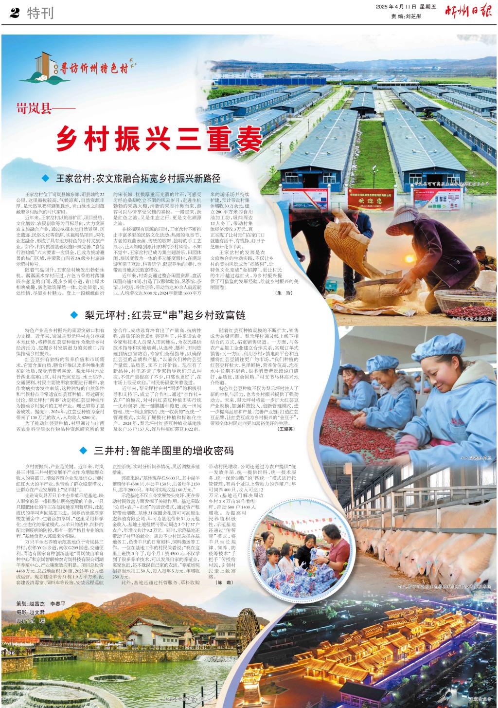 ◆ 王家岔村:農(nóng)文旅融合拓寬鄉(xiāng)村振興新路徑 王家岔村位于岢嵐縣城東部,距縣城約22公里,這里海拔較高,氣候涼爽,自然資源豐厚,是天然氧吧和避暑勝地,青山綠水之間蘊(yùn)藏著鄉(xiāng)村振興的時代密碼。 近年來,王家岔村以旅游擴(kuò)面、項目提質(zhì)、文化增效、農(nóng)民創(chuàng)收等為目標(biāo)導(dǎo)向,大力發(fā)展農(nóng)文旅融合產(chǎn)業(yè),通過挖掘本地自然景觀、歷史遺跡、民俗文化等資源,實施精品項目,深化業(yè)態(tài)融合,形成了具有地方特色的鄉(xiāng)村文旅產(chǎn)業(yè)。如今,村內(nèi)旅游基礎(chǔ)設(shè)施日臻完善,“食宿行游購?qiáng)省绷笠匾粦?yīng)俱全,已成為旅游避暑的熱門區(qū)域,并榮獲山西省3A級鄉(xiāng)村旅游示范村稱號。 隨著氣溫回升,王家岔村煥發(fā)出勃勃生機(jī)。潺潺溪水穿村而過,古色古香的村落鑲嵌在蔥蘢的山間,漫步鄉(xiāng)間小道,青山綠水相映成趣,新老建筑渾然一體,處處皆景,處處怡情,盡顯鄉(xiāng)村魅力。登上一段蜿蜒曲折的宋長城,撫摸厚重而光滑的片石,可感受歷經(jīng)滄桑卻屹立不倒的風(fēng)云歲月;走進(jìn)生機(jī)勃勃的果蔬大棚,清新的果香撲鼻而來,游客可以盡情享受采摘的喜悅。一路走來,既是紅色之旅,又是生態(tài)之行,更是文化溯源之旅。 在挖掘現(xiàn)有資源的同時,王家岔村不斷推出豐富多彩的民俗文化活動:熱鬧的電音節(jié)、古老的戲曲表演、傳統(tǒng)的歌舞、獨特的手工藝展示,讓人領(lǐng)略到原汁原味的鄉(xiāng)村風(fēng)情。不知不覺中,王家岔村已成為集主題游樂、田園休閑、旅居度假為一體的多功能度假村,在滿足游客親子互動、科普研學(xué)、健康養(yǎng)生的同時,也帶動當(dāng)?shù)鼐用裰赂辉鍪铡?/p> 近年來,村委會通過整合閑置資源,盤活閑置商鋪14間,打造了漢服體驗館、風(fēng)箏館、茶館、小吃店、冷飲店等,帶動當(dāng)?shù)?0余人就近就業(yè),人均增收達(dá)3000元;2024年新建1600平方米的游樂場并持續(xù)擴(kuò)建,預(yù)計帶動村集體增收30萬余元;建立280平方米的食用油加工坊,吸納周邊12人務(wù)工,帶動村集體經(jīng)濟(jì)增收3萬元,真正實現(xiàn)了讓村民們在家門口就能有活干、有錢掙,好日子芝麻開花節(jié)節(jié)高。 王家岔村的發(fā)展是農(nóng)文旅融合的生動實踐,不僅讓鄉(xiāng)村的美麗風(fēng)景成為“搖錢樹”,讓特色文化變成“金招牌”,更讓村民的生活越過越紅火,為鄉(xiāng)村振興提供了可借鑒的發(fā)展經(jīng)驗,繪就鄉(xiāng)村振興的美麗畫卷。(朱 玲) ◆ 梨元坪村:紅蕓豆“串”起鄉(xiāng)村致富鏈 特色產(chǎn)業(yè)是鄉(xiāng)村振興的重要突破口和有力支撐。近年來,岢嵐縣梨元坪村充分挖掘本地優(yōu)勢,將特色紅蕓豆種植作為激活鄉(xiāng)村經(jīng)濟(jì)活力、挖掘鄉(xiāng)村發(fā)展?jié)摿Φ耐黄瓶?,持續(xù)推動鄉(xiāng)村振興。 紅蕓豆擁有獨特的營養(yǎng)價值和市場需求,它富含蛋白質(zhì)、膳食纖維以及多種維生素和礦物質(zhì),深受消費者喜愛。梨元坪村地處晉西北高寒山區(qū),村內(nèi)光照充足、水土潔凈、交通便利,村民主要使用農(nóng)家肥進(jìn)行耕種,農(nóng)作物病蟲害發(fā)生率低,這種獨特的自然條件和氣候特點非常適宜紅蕓豆種植。經(jīng)過研究討論,梨元坪村“兩委”決定將紅蕓豆種植作為推動鄉(xiāng)村振興的主導(dǎo)產(chǎn)業(yè)?,F(xiàn)已取得了顯著成效。據(jù)統(tǒng)計,2024年,紅蕓豆種植為全村帶來了130萬元的收入,人均收入8280元。 為了推動紅蕓豆種植,村里通過與山西省農(nóng)業(yè)科學(xué)院農(nóng)作物品種資源研究所的緊密合作,成功選育培育出了產(chǎn)量高、抗病性強(qiáng)、品質(zhì)好的優(yōu)質(zhì)紅蕓豆種子,并邀請農(nóng)業(yè)專家和技術(shù)人員深入田間地頭,為農(nóng)民提供技術(shù)指導(dǎo)和實地培訓(xùn),從選種、播種、田間管理到病蟲害防治,專家們?nèi)讨笇?dǎo),以確保紅蕓豆的品質(zhì)和產(chǎn)量?!耙郧拔覀兎N的蕓豆產(chǎn)量低、品質(zhì)差,賣不上好價錢?,F(xiàn)在有了新品種,村里還請了專家指導(dǎo)我們怎么種植,不僅產(chǎn)量提高了不少,口感也更好了,在市場上很受歡迎?!贝迕駰罡L眯χf道。 近年來,梨元坪村在村“兩委”的積極引導(dǎo)和支持下,成立了合作社,通過“合作社+農(nóng)戶”的模式,對村內(nèi)紅蕓豆種植田實行統(tǒng)一優(yōu)種包衣、統(tǒng)一鋪膜播種施肥、統(tǒng)一田間管理、統(tǒng)一病蟲害防治、統(tǒng)一收獲的“五統(tǒng)一”管理模式,實現(xiàn)了規(guī)模化種植和標(biāo)準(zhǔn)化生產(chǎn)。2024年,梨元坪村紅蕓豆種植業(yè)基地涉及農(nóng)戶55戶157人,連片種植紅蕓豆1022畝。 隨著紅蕓豆種植規(guī)模的不斷擴(kuò)大,銷售成為關(guān)鍵問題。梨元坪村通過線上線下相結(jié)合的方式,拓寬銷售渠道。一方面,與各農(nóng)產(chǎn)品加工企業(yè)建立合作關(guān)系,實現(xiàn)訂單式銷售;另一方面,利用鄉(xiāng)村e鎮(zhèn)電商平臺和直播將紅蕓豆銷往更廣的市場?!拔覀兎N植的紅蕓豆籽粒大,色澤鮮艷,營養(yǎng)價值高,泡在水中長期不褪色,很多消費者反饋說口感好、品質(zhì)優(yōu),還會回購?!贝逯R林高興地介紹道。 特色紅蕓豆種植不僅為梨元坪村注入了新的生機(jī)與活力,