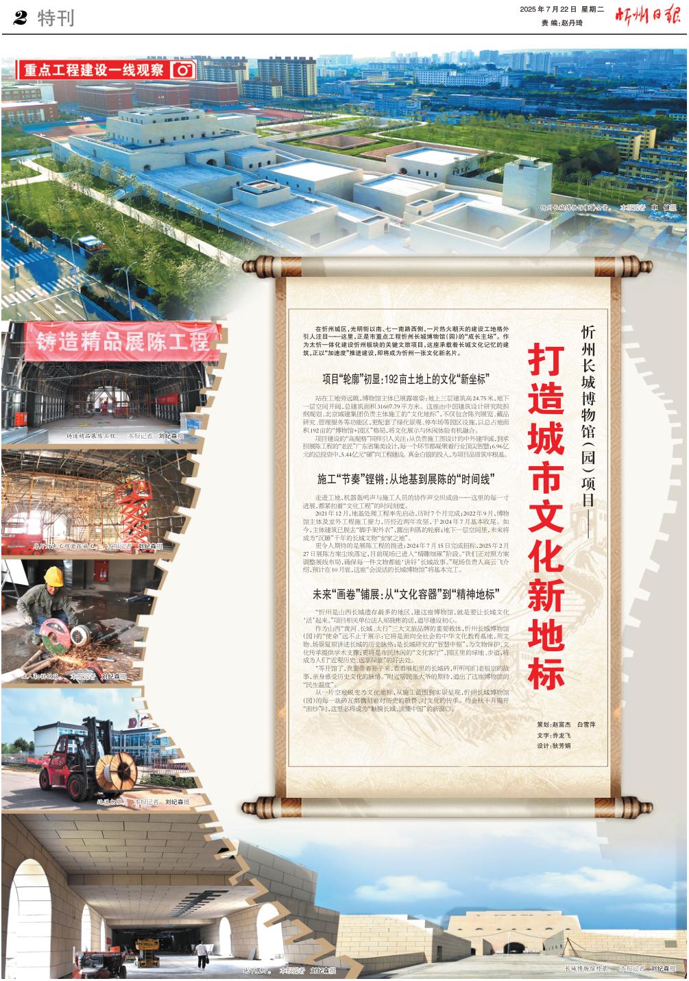 從一片空地蛻變?yōu)槲幕貥?biāo),從施工藍(lán)圖到實(shí)景呈現(xiàn),忻州長(zhǎng)城博物館(園)的每一塊磚瓦都鐫刻著對(duì)歷史的敬畏、對(duì)文化的傳承。待金秋十月揭開(kāi)“面紗”時(shí),這里必將成為“觸摸長(zhǎng)城、讀懂中國(guó)”的新窗口。