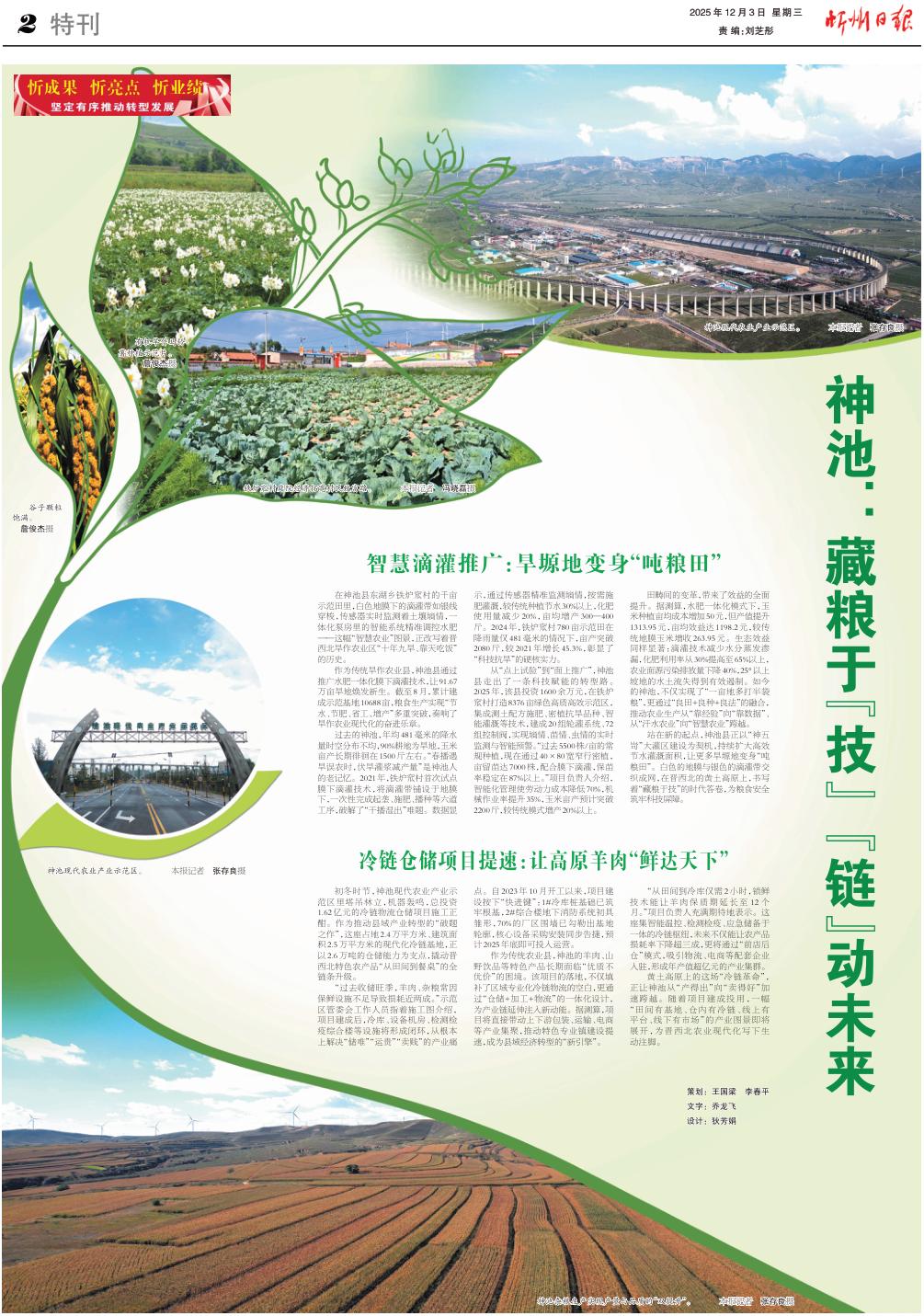 站在新的起點(diǎn),神池縣正以“神五岢”大灌區(qū)建設(shè)為契機(jī),持續(xù)擴(kuò)大高效節(jié)水灌溉面積,讓更多旱塬地變身“噸糧田”。白色的地膜與銀色的滴灌帶交織成網(wǎng),在晉西北的黃土高原上,書寫著“藏糧于技”的時(shí)代答卷,為糧食安全筑牢科技屏障。