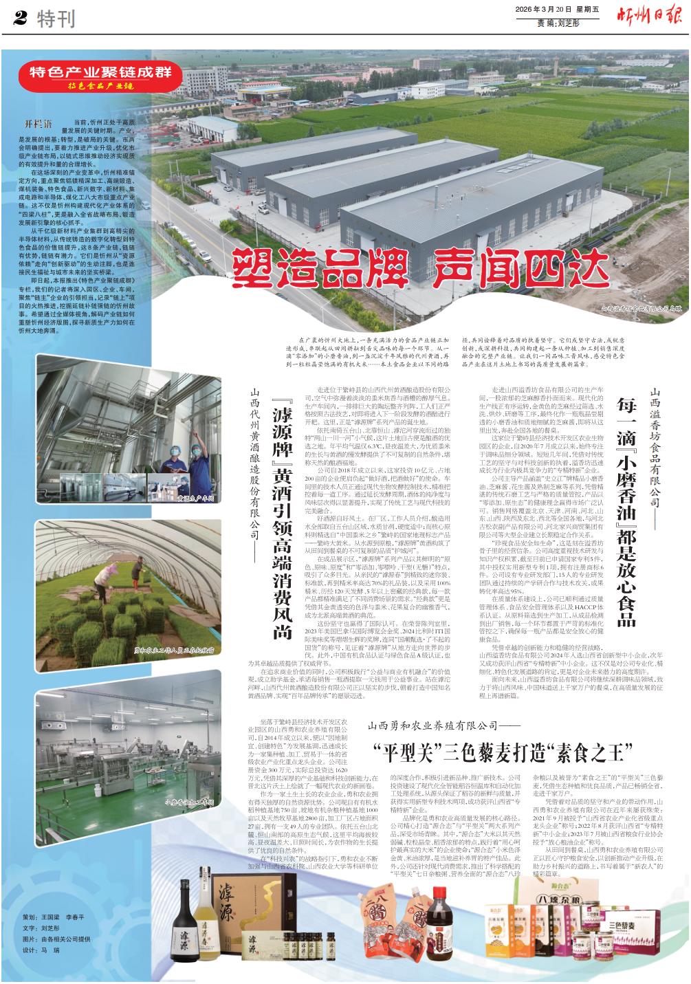 從田間到餐桌,山西勇和農(nóng)業(yè)養(yǎng)殖有限公司正以匠心守護糧食安全,以創(chuàng)新推動產(chǎn)業(yè)升級,在助力鄉(xiāng)村振興的道路上,書寫著屬于“新農(nóng)人”的精彩篇章。(劉芝彤)