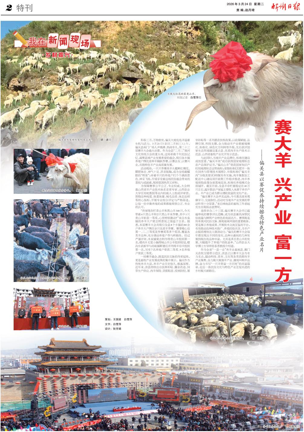 作為全省“一縣一業(yè)”養(yǎng)羊業(yè)基地縣、雁門關(guān)農(nóng)牧交錯(cuò)帶示范區(qū),該縣正以賽羊大會(huì)為有力支點(diǎn),撬動(dòng)科技、資本、文化等各類資源向羊產(chǎn)業(yè)集聚,全力做大做強(qiáng)羊產(chǎn)業(yè)、擦亮叫響羊品牌,奮力書寫“一只羊帶富一方百姓”的共富篇章,走出一條民俗文化與特色產(chǎn)業(yè)互促共進(jìn)的鄉(xiāng)村振興新路徑。