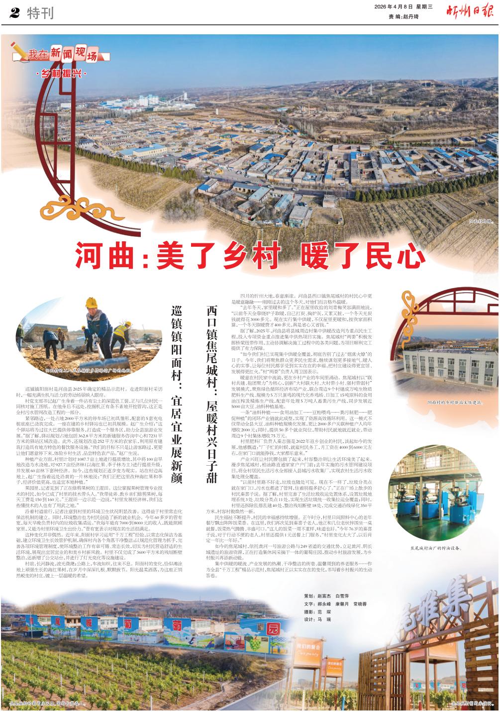 陽面村的工人正在鋪設(shè)鄉(xiāng)村驛站廣場的地面。 緊鄰路邊,一處占地2000平方米的停車場已初具雛形,配套的5套充電樁底座已澆筑完成。一座在建的鄉(xiāng)村驛站也已初具規(guī)模。趙廣生介紹:“這個驛站將為過往大巴提供??糠?wù),打造成一個服務(wù)區(qū),助力全縣旅游業(yè)發(fā)展?!睋?jù)了解,驛站規(guī)劃占地包括362.8平方米的新建服務(wù)咨詢中心和7231平方米的驛站區(qū)域改造。此外,還規(guī)劃改造252平方米的農(nóng)家樂,利用原有建筑打造具有地方特色的餐飲服務(wù)設(shè)施?!拔覀兊哪繕瞬恢皇亲層慰吐愤^,更要讓他們愿意停下來,體驗鄉(xiāng)村生活、品嘗特色農(nóng)產(chǎn)品?!壁w廣生說。 種植產(chǎn)業(yè)方面,村里計劃對1087.7畝土地進行提質(zhì)增效,其中將100畝旱地改造為水澆地,對927.7畝經(jīng)濟林(以海紅果、李子林為主)進行提質(zhì)升級,并發(fā)展60畝林下套種經(jīng)濟。如今,這些規(guī)劃正逐步變?yōu)楝F(xiàn)實。站在村邊高地上,趙廣生指著遠處沿黃的一片林地說:“我們正把這里改種海紅果和李子,經(jīng)濟價值更高,也適宜本地種植。” 果園里,記者見到了正在修剪果樹的王混田。這位掌握果樹管理專業(yè)技術(shù)的村民,如今已成了村里的技術(shù)帶頭人。“我?guī)降?、教鄉(xiāng)親們修剪果樹,每天工費是150到160元?!蓖趸焯镆贿吺痉兑贿呎f,“村里發(fā)展經(jīng)濟林,我們這些懂技術(shù)的人也有了用武之地?!?/p> 沿著村道前行,記者注意到村里的環(huán)境衛(wèi)生狀況明顯改善。這得益于村里常態(tài)化保潔機制的建立。同時,環(huán)境整治也為村民創(chuàng)造了新的就業(yè)機會。今年60多歲的菅有寬,每天早晚負責村內(nèi)的垃圾收集清運?!拔颐磕昴苡?000到8000元的收入,既能照顧家里,又能為村里環(huán)境衛(wèi)生出份力。”菅有寬表示對現(xiàn)在的生活很滿足。 這種變化并非偶然。近年來,陽面村學習運用“千萬工程”經(jīng)驗,以常態(tài)化保潔為基礎(chǔ),建立環(huán)境衛(wèi)生長效管護機制,確保村內(nèi)各個角落干凈整潔;以規(guī)范化管理為抓手,完善各項環(huán)境管理制度,使環(huán)境整治工作有章可循、常態(tài)長效,切實為村民營造舒適的生活環(huán)境,展現(xiàn)出宜居宜業(yè)的和美鄉(xiāng)村新風貌。村里不僅完成了3600平方米的殘垣斷壁整治,還新增了公交站臺,并進行了燈光亮化等設(shè)施建設(shè)。 村前,長河靜流,波光瀲滟;公路上,車流如織,往來不息。陽面村的變化,恰似灘涂地上頑強生長的海紅果樹,在歲月中深深扎根、默默拔節(jié)。陽光溫柔灑落,為這座正悄然蛻變的村莊,鍍上一層溫暖的希望。 西口鎮(zhèn)焦尾城村:屋暖村興日子甜 四月的忻州大地,春意漸濃。河曲縣西口鎮(zhèn)焦尾城村的村民心中更是暖意融融——剛剛過去的這個冬天,對他們而言格外溫暖。 “去年冬天,家里暖和多了。”正在屋里收拾的劉青梅笑容滿面地說,“以前冬天全靠燒爐子取暖,自己打炭、掏爐灰,又累又臟,一個冬天光炭錢就得花3000多元?,F(xiàn)在實行集中供暖,不僅屋里更暖和,按我家面積算,一個冬天取暖費才400多元,真是省心又省錢?!?/p> 據(jù)了解,2025年,河曲縣將縣城周邊村集中供暖改造列為重點民生工程,投入專項資金重點推進集中供熱項目實施。焦尾城村“兩委”積極發(fā)揮橋梁紐帶作用,主動協(xié)調(diào)解決施工過程中的各類問題,為項目順利完工提供了有力保障。