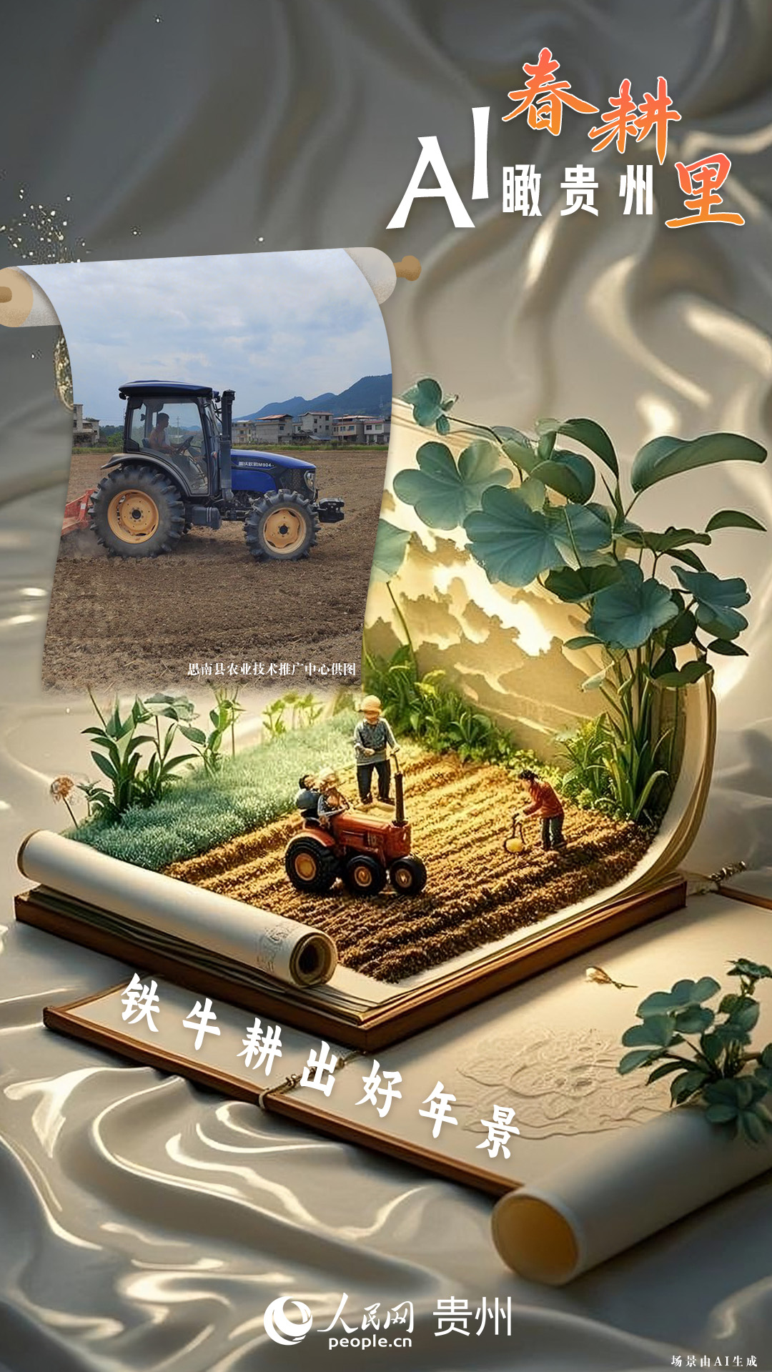 春回大地,萬(wàn)物復(fù)蘇,黔地山川間正上演著一場(chǎng)生機(jī)勃勃的春耕盛景。傳統(tǒng)農(nóng)耕與現(xiàn)代科技在這里交織,描繪出一幅幅充滿希望的畫(huà)卷。 春耕不僅是農(nóng)時(shí)的序曲,更是科技與土地對(duì)話的現(xiàn)場(chǎng)。在貴州這片喀斯特地貌與民族文化交織的土地上,春耕正經(jīng)歷一場(chǎng)靜默的變革:無(wú)人機(jī)掠過(guò)千年梯田,算法解析紅壤墑情,覆膜機(jī)織就“智能外衣”,而彎腰勞作的農(nóng)人,依然用繭手傳遞著古老農(nóng)耕文明的溫度。 本期跟隨AI一起描繪貴州春耕里的故事。