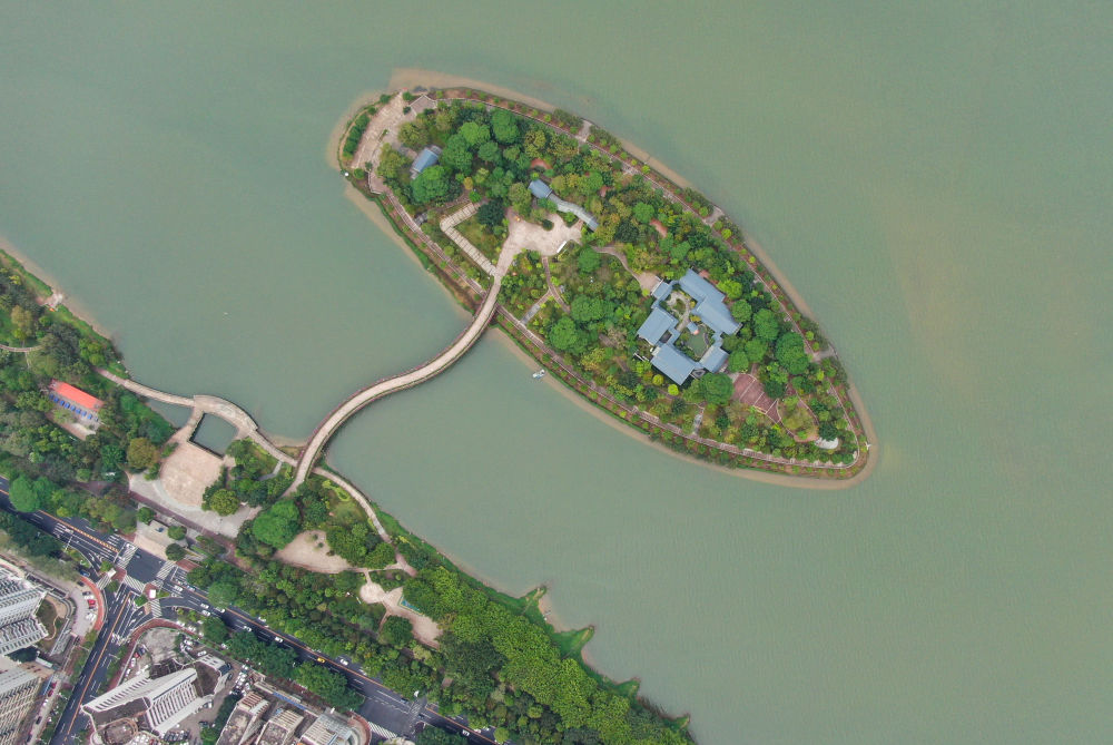 2021年4月8日拍攝的江心島書(shū)院所在的廣東清遠(yuǎn)清城區(qū)北江的江心島(無(wú)人機(jī)照片)。新華社記者 鄧華 攝