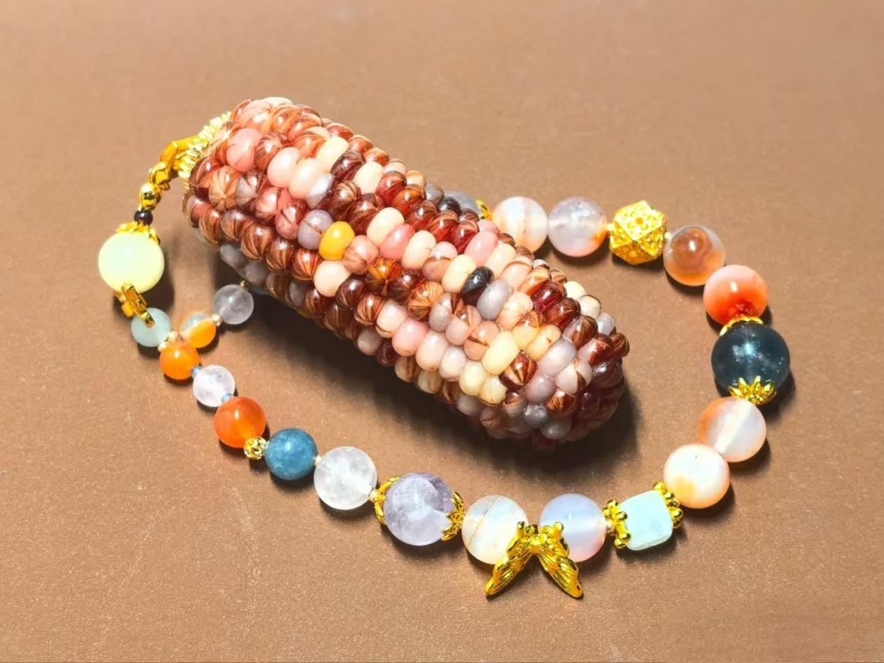 作為玉米家族的“顏值擔(dān)當(dāng)”,成熟后的玉米粒偏硬,現(xiàn)在大家已經(jīng)放棄它的食用價(jià)值,轉(zhuǎn)而追求觸感的溫潤(rùn)和盤玩后的琥珀光澤。