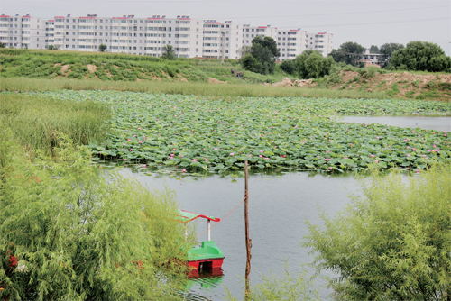 近日,位于原平城南的臥牛河迎來了荷花綻放、野鴨戲水、游人垂釣的好時(shí)光。早些年,臥牛河是原平城區(qū)企業(yè)排放廢水、居民傾倒垃圾的臭水溝,經(jīng)過整治,臭水溝變身荷花塘,成為城區(qū)一大景觀。(曹申義 攝)