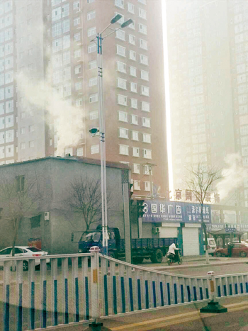 城區(qū)云中路瑞新裝飾城對(duì)面,有兩個(gè)煙囪冒煙,污染環(huán)境。城區(qū)七一路臨街一酒店樓頂有煙不斷冒出,而且味道嗆人。希望商戶或住戶配合治理,共同營造碧水藍(lán)天的良好環(huán)境。12月9日網(wǎng)友攝