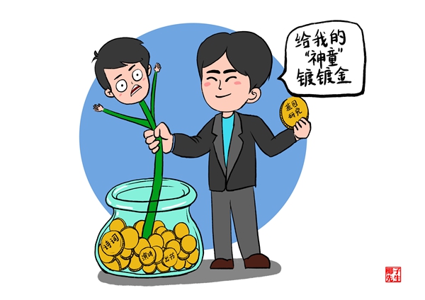 如此“鍍金”是害了孩子。學習是一場馬拉松,投機取巧和急功近利違背兒童成長規(guī)律,名不副實的光環(huán)終究會給孩子帶來負擔,甚至誤導孩子一生。父母之愛子,則為之計深遠。想讓這份愛有個正確的打開方式,就請多傾聽孩子的心聲,更加關(guān)注他們的身體素質(zhì)、道德情操、交往能力、自理能力,多一份平常心和實事求是,讓孩子能夠自由健康成長!(文字:董璐 手繪:趙凱)