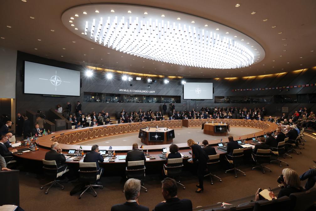這是6月14日在比利時布魯塞爾北約總部拍攝的北約防長會現(xiàn)場。北約秘書長斯托爾滕貝格14日說,北約成員國國防部長當天批準了一項旨在由北約協(xié)調(diào)對烏克蘭軍事援助和訓練的計劃。北約防長會13日至14日在布魯塞爾舉行。新華社記者趙丁喆攝