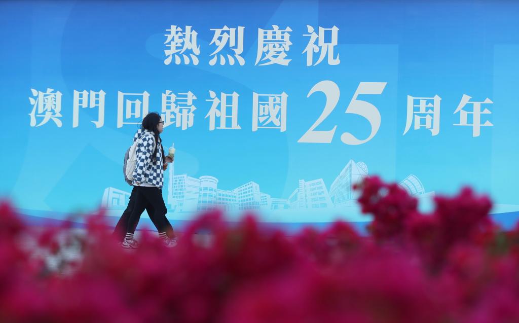 這是屬于澳門(mén)和全體中華兒女的光輝日子。25年前,中國(guó)政府恢復(fù)對(duì)澳門(mén)行使主權(quán),中華人民共和國(guó)澳門(mén)特別行政區(qū)成立,飽經(jīng)滄桑的游子終于回到祖國(guó)母親懷抱,開(kāi)啟嶄新的歷史紀(jì)元。25年來(lái),在中央和祖國(guó)內(nèi)地大力支持下,澳門(mén)特別行政區(qū)政府和社會(huì)各界接續(xù)奮斗,具有澳門(mén)特色的“一國(guó)兩制”實(shí)踐取得舉世公認(rèn)的成功,憲法和澳門(mén)基本法確立的特別行政區(qū)憲制秩序牢固樹(shù)立,澳門(mén)各項(xiàng)事業(yè)全面進(jìn)步,國(guó)際影響力顯著提升,屹立于南海之濱的澳門(mén)特別行政區(qū)更加生機(jī)勃勃,祖國(guó)的“盛世蓮花”煥發(fā)出前所未有的絢麗光彩。