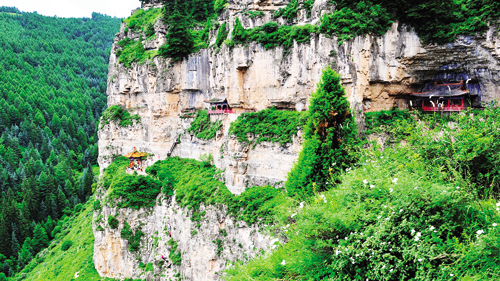 在天然形成的垂直巖壁上,古人鑿?fù)碎L(zhǎng)達(dá)42華里的棧道,有的地方有一人高,有的地方必須伏下身爬過(guò)去,在兩山之間,還有長(zhǎng)長(zhǎng)的吊橋連接。