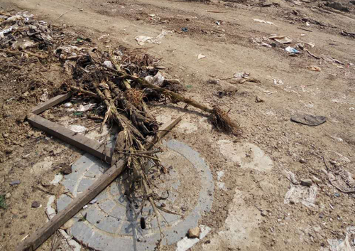 一位村民指著西面被垃圾包圍的一個(gè)鐵皮焊接成的小門說:“這就是我們?nèi)迦顺运乃?,水從井里抽出,通過管道送往距此地約300多米的蓄水池,然后在供給各家各戶,這是我們?nèi)逦ㄒ坏某运?。?/p>
