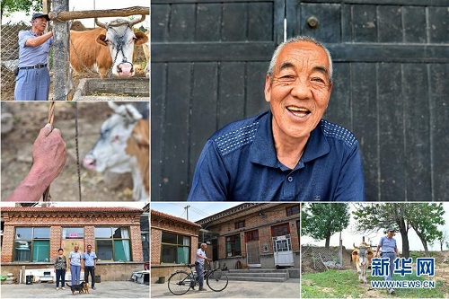 尚彩良,男,1949年出生,山西省長治市潞城區(qū)比干嶺村人,家傳的養(yǎng)殖技術(shù)讓他從小不愁吃穿,但突如其來的患病導(dǎo)致他生活陷入困難。2015年開始,他享受貧困戶養(yǎng)殖補貼、種植補貼和醫(yī)療補貼,2016年在當(dāng)?shù)卣膸椭伦∵M(jìn)了新房。 右上:尚彩良肖像;左上:尚彩良準(zhǔn)備去放牛;左中:尚彩良在放牛;左下:尚彩良(中)和家人在新院子里合影;下中:尚彩良推著自行車走進(jìn)院子;下右:尚彩良在去放牛的路上(拼版照片,6月12日攝)。 地處晉東南的山西省長治市,位于由太行山、太岳山環(huán)繞而成的上黨盆地中。在群山中、崖壁上,許多村莊自然條件惡劣,基礎(chǔ)設(shè)施落后,脫貧致富是大山深處人們的迫切心愿。 近年來,一場場脫貧攻堅戰(zhàn),在一個個深山村打響。政府全力探索脫貧路徑的同時,山區(qū)百姓因地制宜,靠自己的雙手和智慧走上致富路,交出了一份扎實的脫貧答卷。 記者在太行山、太岳山一路尋訪,記錄下多位70歲老人的生活。這些共和國的同齡人,親歷了山鄉(xiāng)的巨變,見證著長治山區(qū)脫貧攻堅偉大工程的一步步推進(jìn)。 新華社記者 曹陽 攝