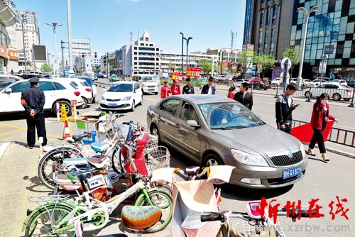 經(jīng)過連續(xù)幾年大干城建年和如火如荼的創(chuàng)衛(wèi)建設(shè),忻州市民欣喜地看到城區(qū)發(fā)生了巨大的變化,路寬了,樹綠了,現(xiàn)代化建筑鱗次櫛比。城市硬件設(shè)施的提升,更需要文明軟實(shí)力的提升,可是總有一些人,自身素質(zhì)跟不上文明的腳步,譬如近日記者在街頭看到,有人將電動(dòng)車停放在機(jī)動(dòng)車之間,有人扎堆將自行車電動(dòng)車無序停放在街道邊,還有的司機(jī)在禁停標(biāo)志前赫然停放車輛,讓城市秩序頓顯零亂之感。圖一為城區(qū)七一路網(wǎng)通公司門前自行車輛亂停亂放;圖二為有人將電動(dòng)車停放在機(jī)動(dòng)車之間;圖三為一輛轎車在禁停標(biāo)志前橫跨盲道停放。(魯明強(qiáng))