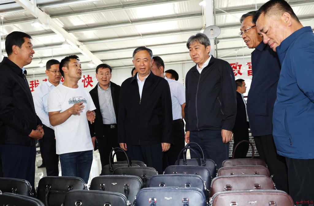 在代縣,陳志剛一行在濱河移民產(chǎn)業(yè)園區(qū)雁弘紡織廠和新城村光伏扶貧電站進行調(diào)研,對移民搬遷后續(xù)扶持項目、光伏扶貧等工作提出要求。在繁峙縣,陳志剛一行先后考察了駿凱皮具手工業(yè)扶貧工廠、田園毛驢養(yǎng)殖科技發(fā)展有限公司、晉魯諾佳食品有限公司,詳細了解產(chǎn)業(yè)扶貧、社區(qū)后續(xù)管理、毛驢養(yǎng)殖培訓(xùn)項目、脫水蔬菜加工等情況。