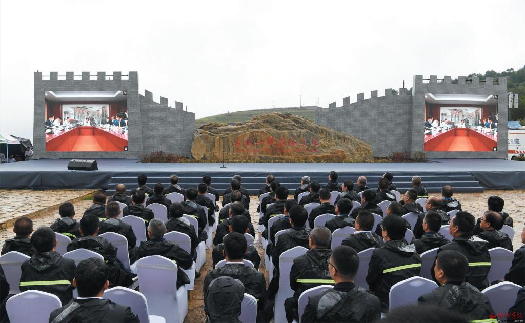老牛灣長(zhǎng)城一號(hào)旅游公路“0Km”標(biāo)志文化驛站啟用活動(dòng)現(xiàn)場(chǎng)。劉紀(jì)森 攝
