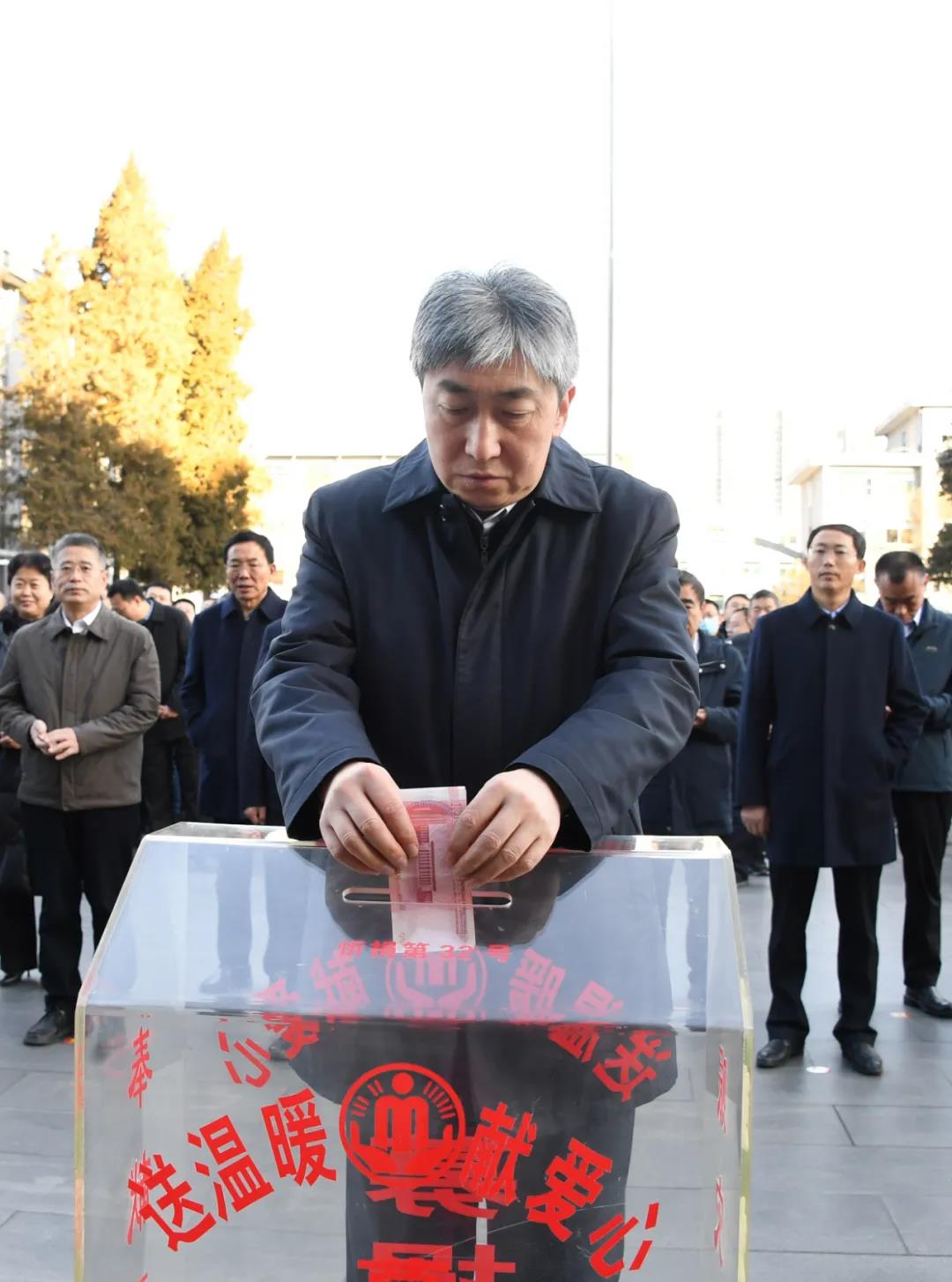 捐款現(xiàn)場。劉紀(jì)森 攝 本報訊 (記者楊峰雷)12月1日上午,我市舉行2021年“送溫暖 獻愛心”社會捐助活動啟動儀式,動員社會各界積極參與捐助,為困難群眾獻出一份愛心。朱曉東、郭奔勝、王珍、王建廷、劉卓良、秦書義、趙新年、劉瑞生、張文偉、溫建軍等市四套班子領(lǐng)導(dǎo)和市委、市人大常委會、市政府、市政協(xié)辦公室干部職工在現(xiàn)場帶頭捐款。據(jù)悉,啟動儀式現(xiàn)場共收到捐款46200元。