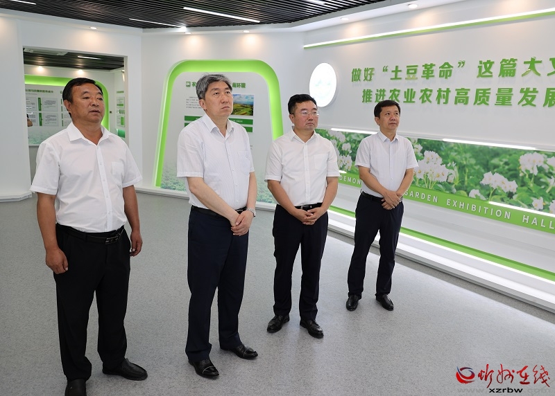 在安子村和張家坪村全面察看現(xiàn)代加工型馬鈴薯種植基地、萬畝谷子種植基地高標準農田建設,聽取“機田證”一體化實踐和新型合作模式探索情況后,朱曉東強調,農民是現(xiàn)代農業(yè)產業(yè)鏈的基礎環(huán)節(jié),大力發(fā)展特色產業(yè),是促進農民收入穩(wěn)定增長的關鍵,要完善利益聯(lián)結機制,吸引更多農戶投入現(xiàn)代農業(yè)發(fā)展,切實抓住“機、地、人”的主要矛盾,解決好現(xiàn)代農業(yè)“誰來種地、怎么種好地”的問題。要在農業(yè)高新技術產業(yè)化應用上做出示范,堅持向科技要效益,突出農機農藝結合,注重“糧頭食尾”“農頭工尾”銜接,在現(xiàn)代化設施農業(yè)發(fā)展上不斷取得新突破,真正實現(xiàn)疊加效應,實現(xiàn)農業(yè)生產效益倍增,全面推進鄉(xiāng)村振興。