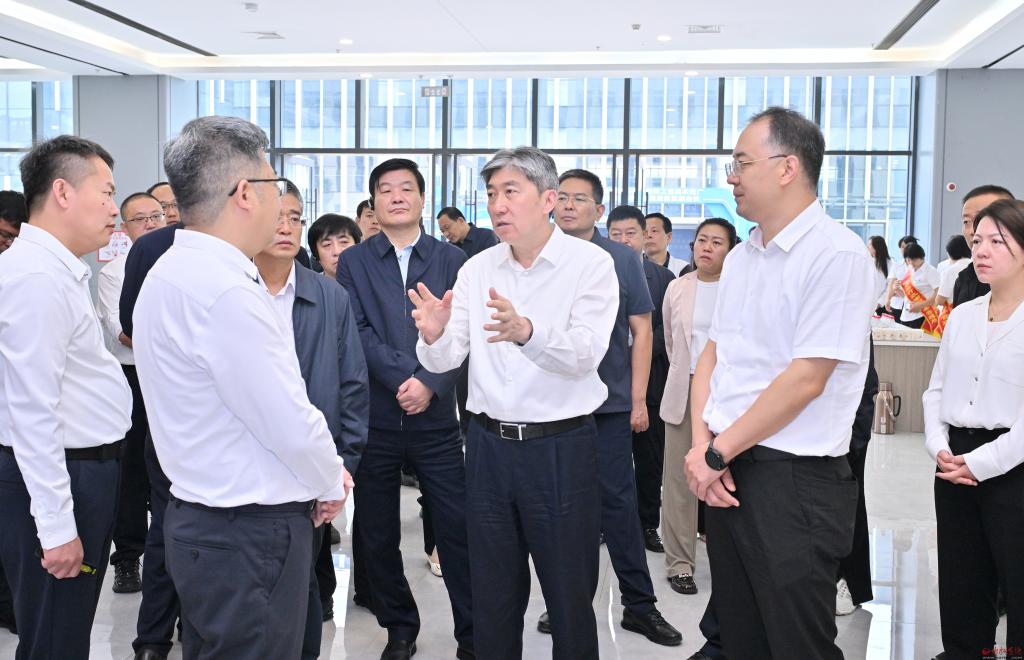在定襄縣鍛造產(chǎn)業(yè)服務(wù)基地觀摩檢查法蘭專(zhuān)業(yè)鎮(zhèn)大數(shù)據(jù)綜合服務(wù)平臺(tái)項(xiàng)目情況。攝影馮曉磊