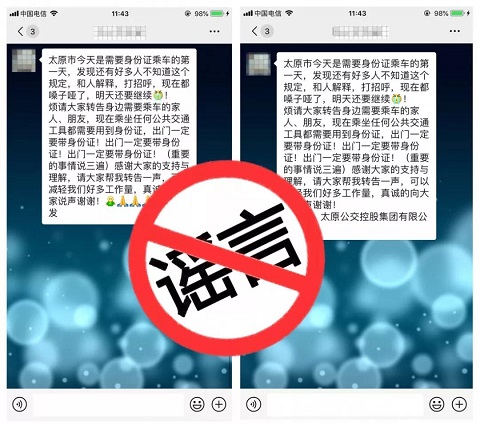 近日,微信朋友圈、釘釘、微博等社交平臺(tái)均在傳播“乘坐公交車(chē)需要出示身份證”的傳言。您收到了嗎?