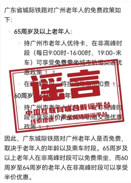 謠 言 持廣州市老年人優(yōu)待卡可免費(fèi)乘坐城際列車?