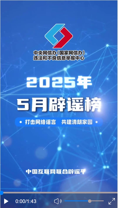 打擊網(wǎng)絡謠言 共建清朗家園 中國互聯(lián)網(wǎng)聯(lián)合辟謠平臺2025年5月辟謠榜