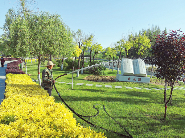 6月2日,五臺(tái)縣住建局園林處對(duì)全縣四大公園的綠化帶開(kāi)始澆灌,以保證93.34公頃的喬木、灌木順利度過(guò)干燥期,為創(chuàng)建國(guó)家園林縣城提供綠色保障。圖為臺(tái)虒公園進(jìn)行夏澆。(金俊賢攝)