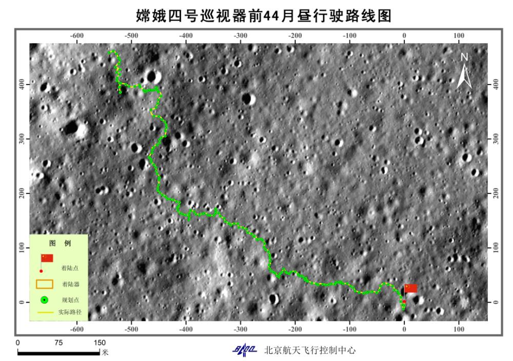 嫦娥四號巡視器前44月晝行駛路線圖。北京航天飛行控制中心供圖
