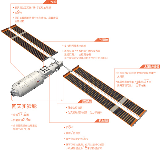 ?問天實驗艙示意圖。資料來源:中國航天科技集團(tuán)五院