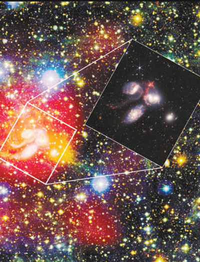徐聰說(shuō):“這些原子氣體結(jié)構(gòu)的形成很可能與 ‘斯蒂芬五重星系’早期形成時(shí)星系間相互作用的歷史有關(guān),可能已經(jīng)存在了大約10億年?!?/p>