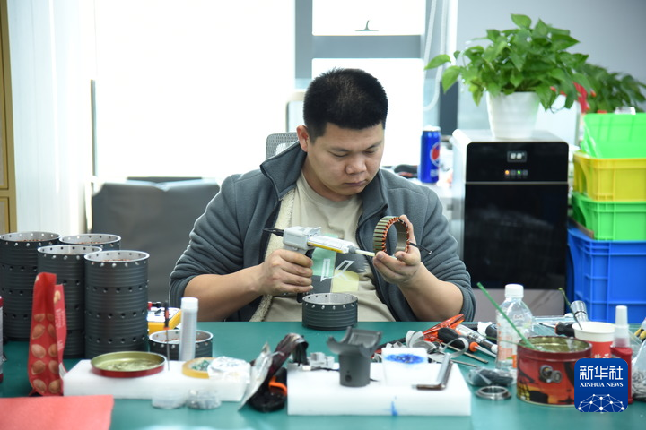 在深圳市眾擎機(jī)器人科技有限公司,一位工作人員正調(diào)試人形機(jī)器人部件(1月21日攝)。新華社記者洪澤華攝