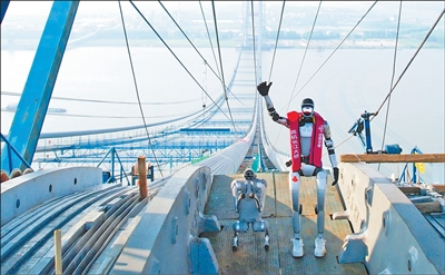 “相信在不久的將來(lái),機(jī)器人會(huì)替代部分橋梁工程的人工操作環(huán)節(jié)?!敝薪欢骄盅啻夐L(zhǎng)江大橋項(xiàng)目技術(shù)負(fù)責(zé)人羅航說(shuō),未來(lái)借助機(jī)器人完成巡檢,能大幅降低人員的勞動(dòng)強(qiáng)度。(韓 鑫)