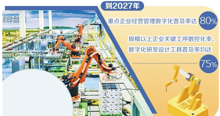 工業(yè)和信息化部等7部門日前印發(fā)《食品工業(yè)數(shù)字化轉型實施方案》(以下簡稱《實施方案》)提出,到2027年,重點企業(yè)經營管理數(shù)字化普及率達80%,規(guī)模以上企業(yè)關鍵工序數(shù)控化率、數(shù)字化研發(fā)設計工具普及率均達到75%,打造百個數(shù)字化轉型典型應用場景,梯次實施千個數(shù)字化示范(試點)項目。