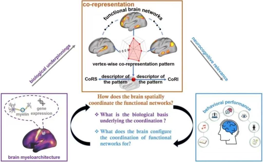這項研究加深了對大腦功能組織模式的理解,揭示了腦區(qū)參與到不同腦功能網(wǎng)絡(luò)的模式,并探索了其背后的解剖學基礎(chǔ)和遺傳因素。此外,研究人員利用大規(guī)模、高質(zhì)量人腦功能磁共振數(shù)據(jù),獲取了不同尺度的個體化腦功能網(wǎng)絡(luò),并提出網(wǎng)絡(luò)在空間上共表征的概念,發(fā)展了共表征特異性和共表征普遍性的定量指標。