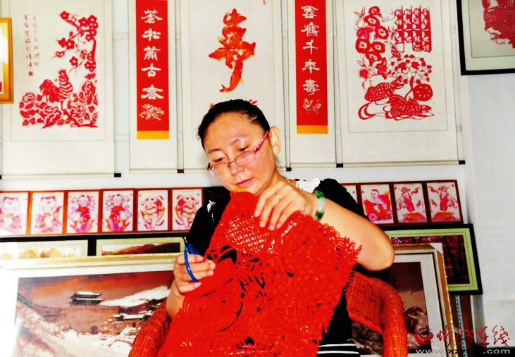 2017年7月,忻州市在北京恭王府舉行了為期40天的非物質文化遺產(chǎn)展銷活動,吸引了大量北京市民和外地游客前來觀看,一些非遺文化產(chǎn)品供不應求,展銷活動取得巨大成功。張巖松作為市非物質文化遺產(chǎn)傳承人、代縣雁剪閣文化藝術有限公司設計師帶隊參加了這次活動。起初,她們只帶了五件掛軸、二十多個小鏡框做展示。布展當天,展品掛好不到一小時,就被顧客搶購一空。于是,張巖松只能打電話,讓人們連夜開車把展品送來。此次展銷活動,讓張巖松大開眼界,她對剪紙藝術更加熱愛、更有信心了。