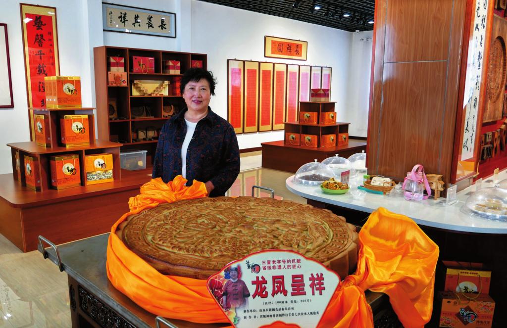 今年63歲的甄建英是土生土長(zhǎng)的神池人,深得古方非遺技藝精髓,月餅制作技藝高超,被認(rèn)定為省級(jí)非遺傳承人。9月10日,在第七屆神池月餅文化節(jié)暨特色食品專業(yè)鎮(zhèn)美食展銷古城專場(chǎng)活動(dòng)現(xiàn)場(chǎng),展出的直徑為1米、重達(dá)260斤的兩塊大月餅——“龍鳳呈祥”和“望月樓”,便是出自甄建英之手。