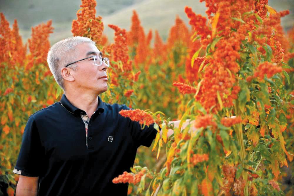 在李潤青的藜麥有機旱作田里,原產(chǎn)于南美洲安第斯山區(qū)的藜麥和中國傳統(tǒng)雜糧品種結合、輪作互補。