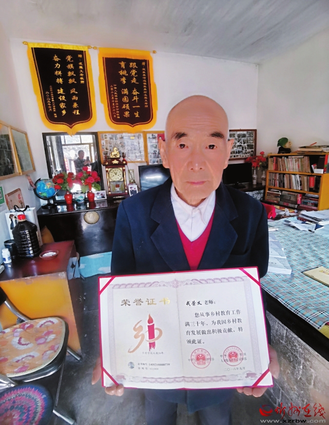 出生于1937年的戎榮義老人人生跌宕起伏:學(xué)業(yè)優(yōu)異卻沒上過大學(xué),教學(xué)優(yōu)秀卻扛過鋤頭,老來當(dāng)村官百姓稱贊,守護(hù)紅色舊址贏得身心健康,如今背不駝、腰不彎、腦不亂,特別是炯炯有神的眼睛,讓誰也想不到他已是86歲的耄耋老者。